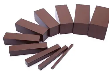 ten wooden prisms, all 20cm long but increasing in width and height from 1cm to 10cm.